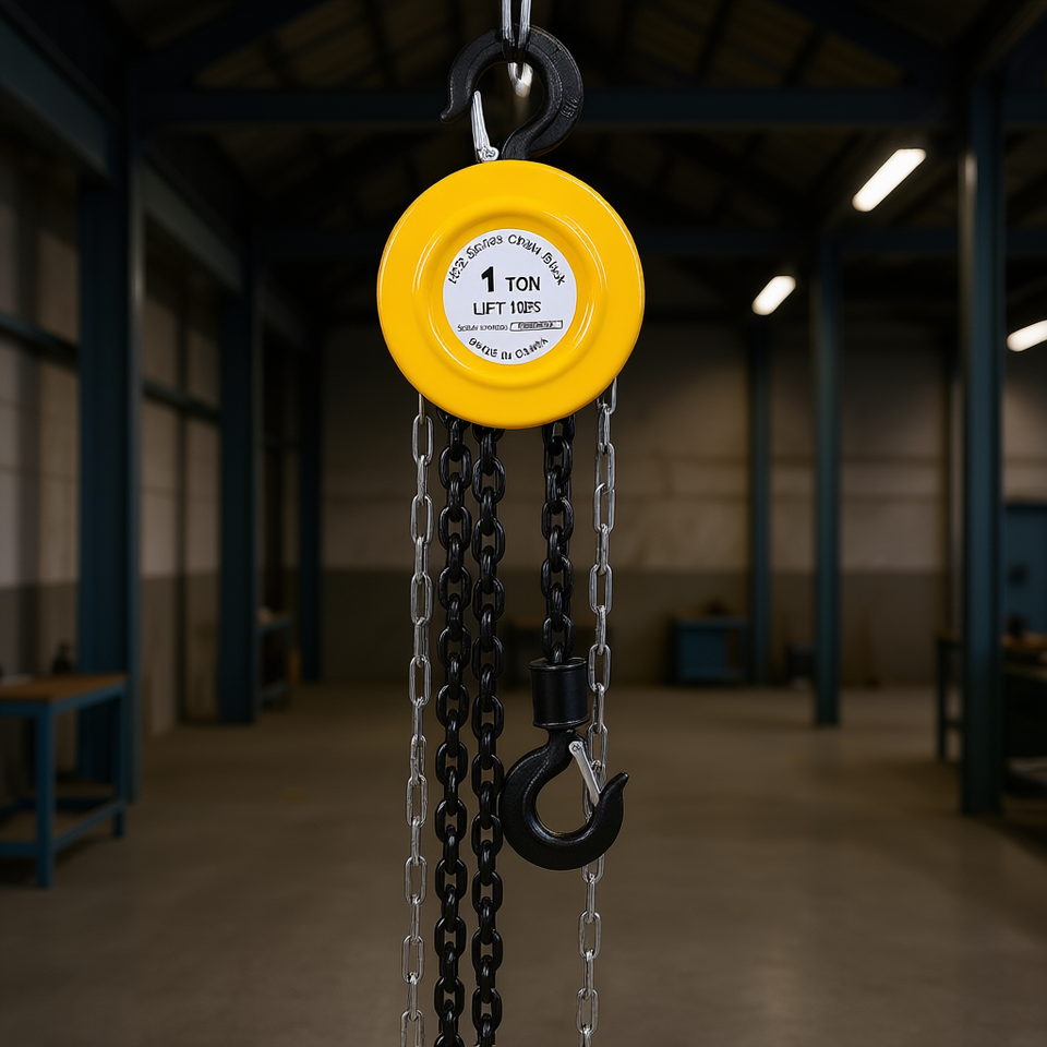 Paranco a Catena Manuale 1 Tonnellata 10 Piedi Giallo in Acciaio con 2 Ganci per Sollevamento Magazzino