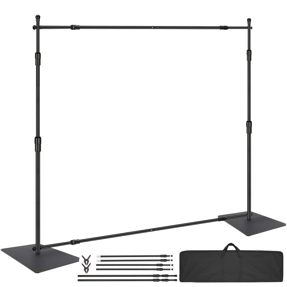 Kit per fondali con tubi rinforzati 3x3m con base in acciaio al carbonio, supporto regolabile e 6 morsetti per fondali