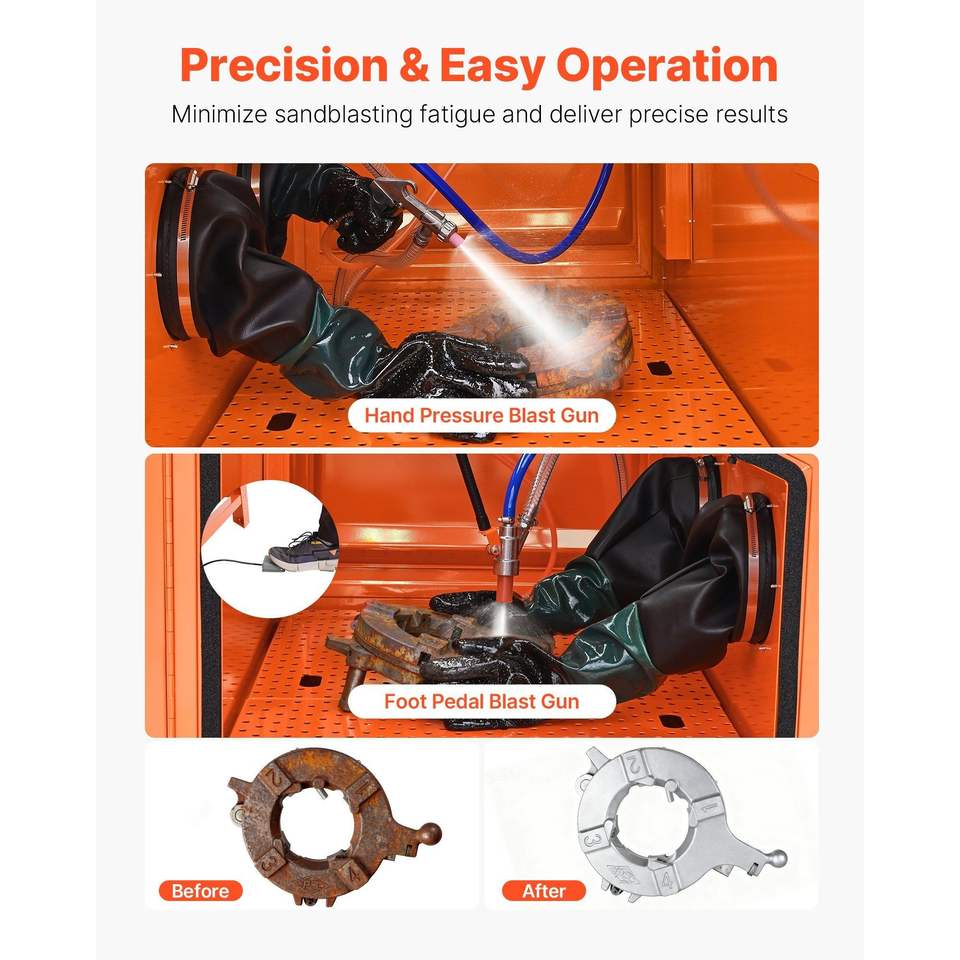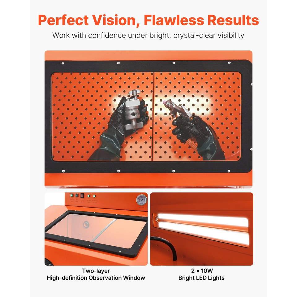 Cabina di Sabbiatura in Acciaio Resistente da 115 Galloni con Tramoggia per Graniglia da 31 Galloni e Doppia Pistola Sabbiatrice da 1.6 Pollici - Sabbiatrice di Alta Gamma