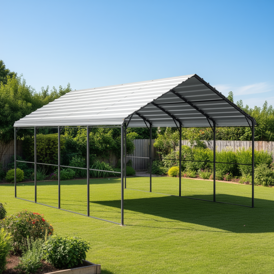 Heavy Duty 12 X 20 Ft Galvanized Steel Carport Gable Roof Outdoor Metal Garage Shelter For Cars 2 Car Parking Canopy