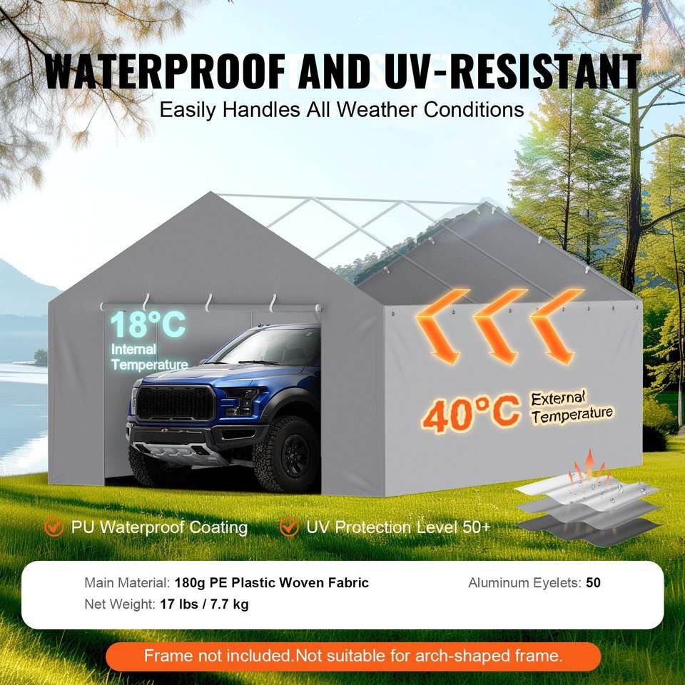 Telo di Ricambio per Tenda Garage/Posto Auto Coperto Resistente 13 x 20 piedi con Protezione UV, Facile da Installare, Impermeabile