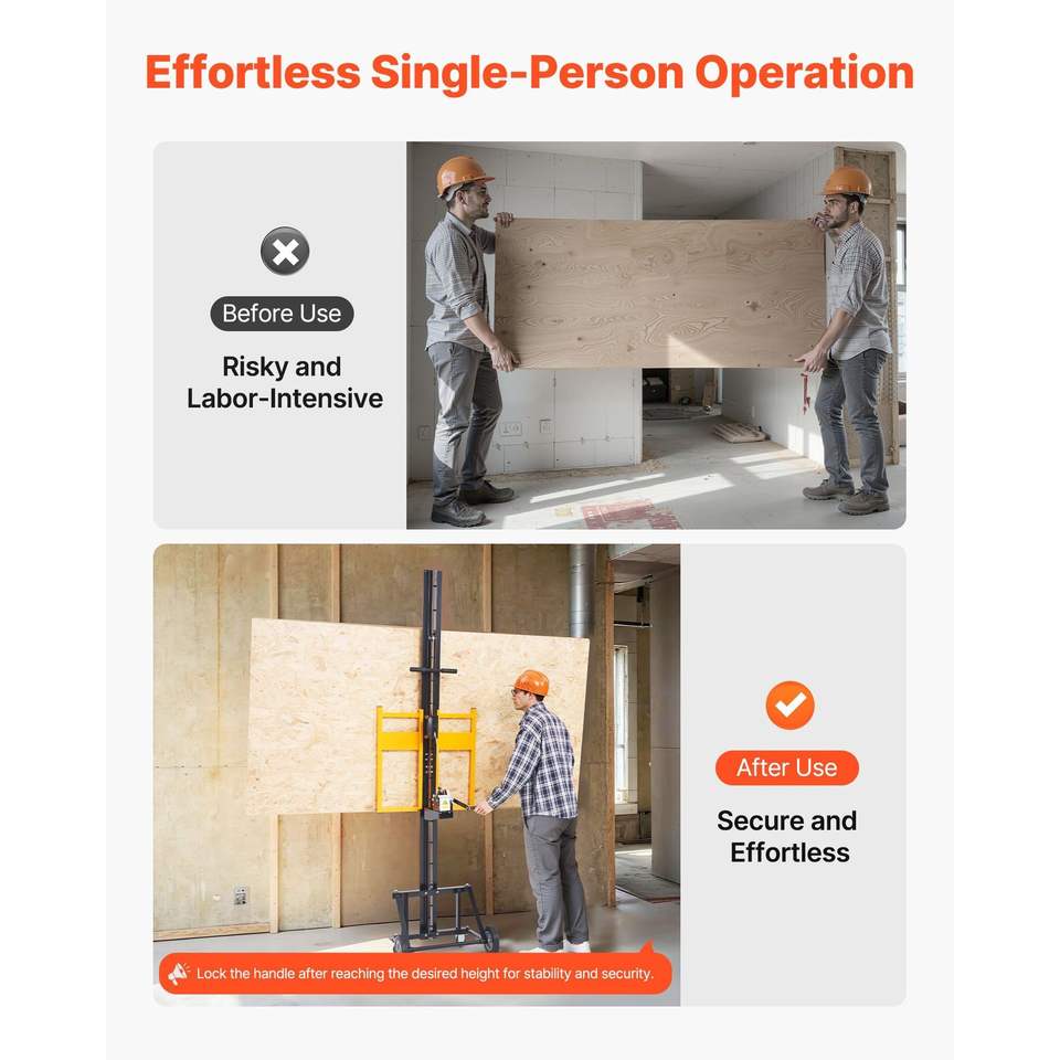 Heavy-Duty 150 Lbs Drywall Lift One-Person Installation Sheetrock Hoist 4 X 16 ft Max. Panel Lifter Jack Hoist Wheels Easy