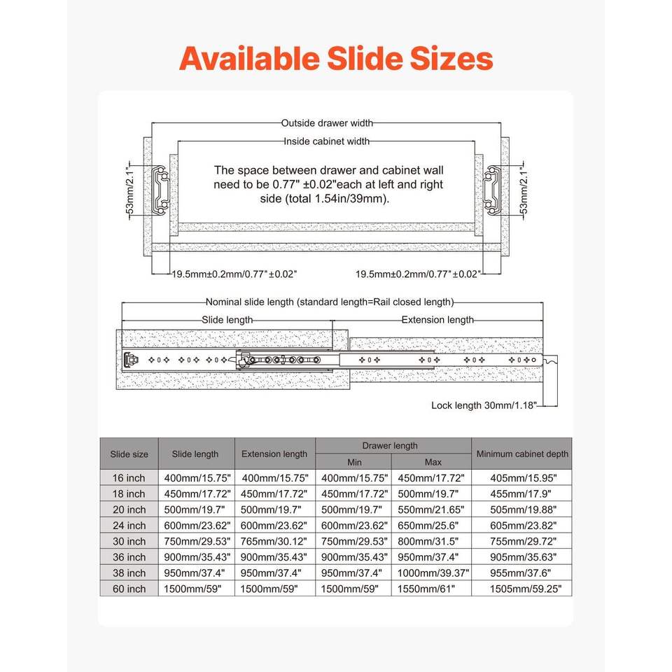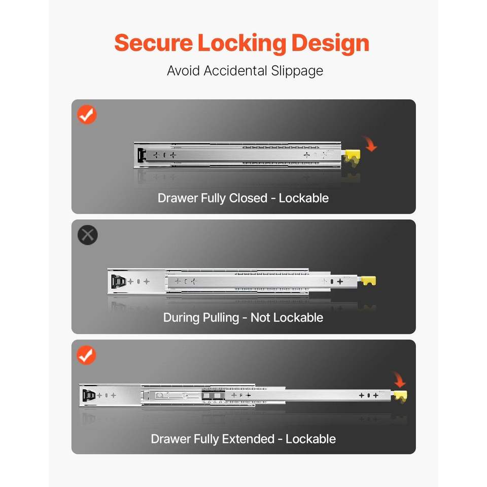 Guide per cassetti per impieghi gravosi da 16 pollici, 1 paio, con cuscinetti a sfera bloccabili, a 3 sezioni, estensione completa, montaggio laterale, capacità di carico 250 libbre