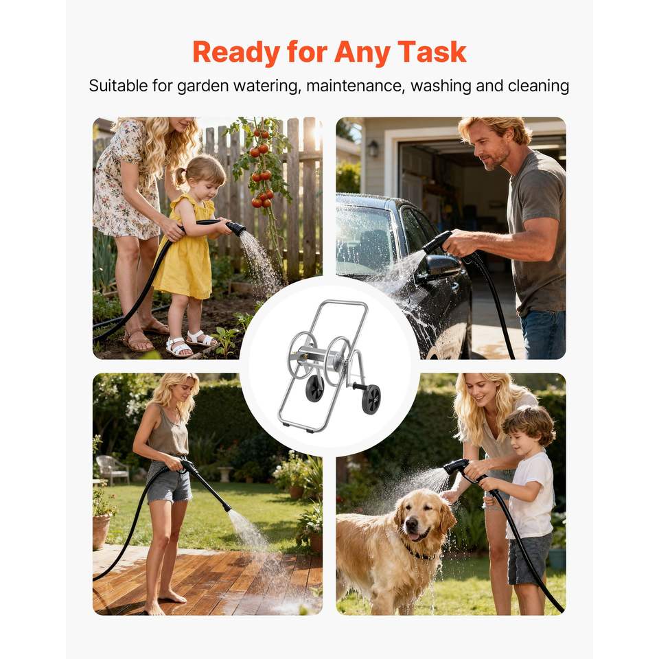 Carrello Avvolgitubo da Giardino Rinforzato da 53 m (175 ft) con Ruote per Attrezzi Mobili - Tubo da 5/8 Pollici Non Incluso