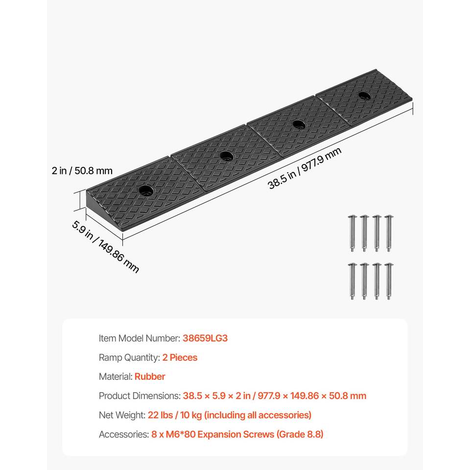 Rampa in gomma per sponde eccessuarie per impieghi gravosi, altezza 2 pollici, capacità di carico 33069 libbre, per soglie, drenaggio, serbatoi e accesso per sedie a rotelle