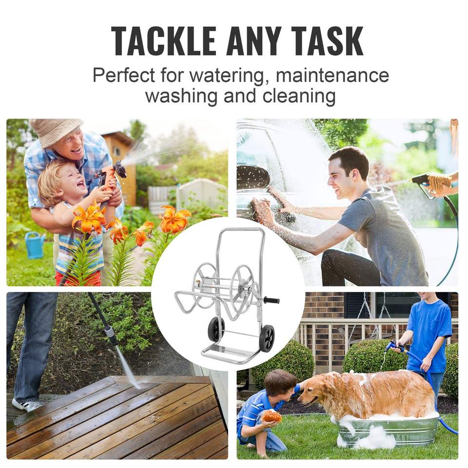 Heavy Duty 200 ft 5/8 Garden Water Hose Reel Cart with Mobile Tools Wheels 500 Lbs Hold up Capacity Hose Not Included