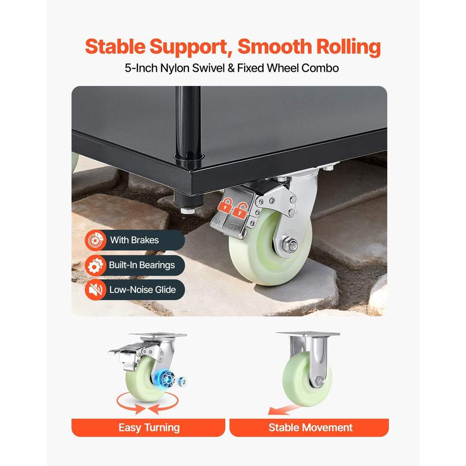 Carrello Industriale in Acciaio per Carichi Pesanti con Capacità di 900 kg, Ruote Girevoli e Maniglia, per Movimentazione Materiali