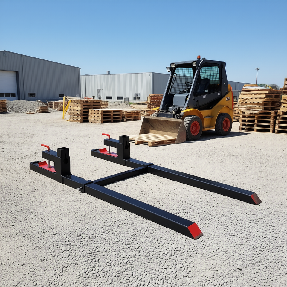 Forche per pallet a morsetto per impieghi gravosi da 900 kg, lunghezza totale 152 cm, attacco per skid steer loader, nere, regolabili