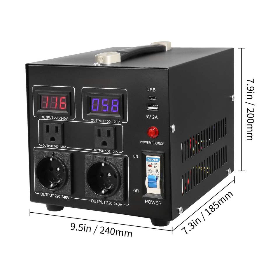 Convertitore di Tensione Industriale 2000W da 110V a 220V, Inverter e Convertitore Step Up/Down per Accesso a 220 Volt