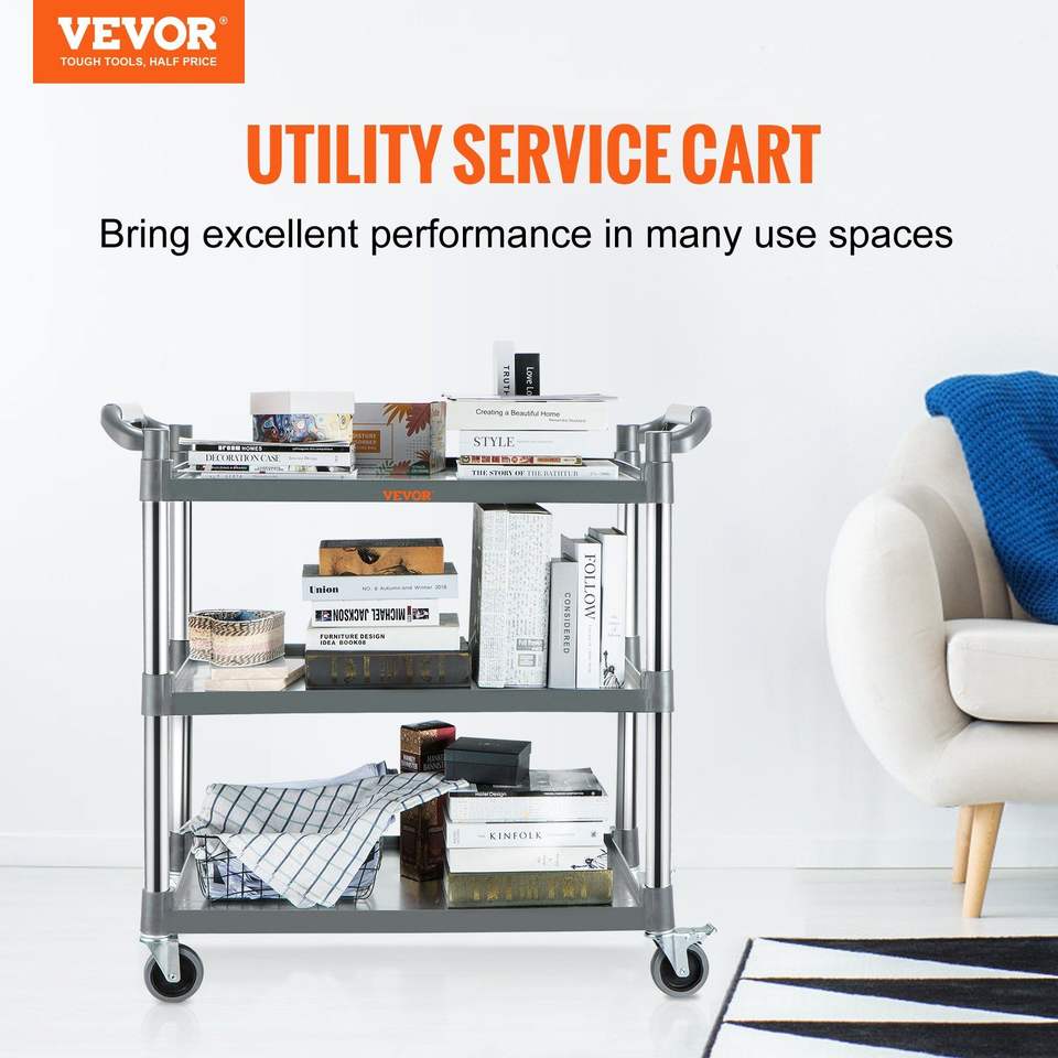 Carrello di Servizio Pesante 220LBS 102x49x97cm con Ruote Bloccabili e 3 Ripiani