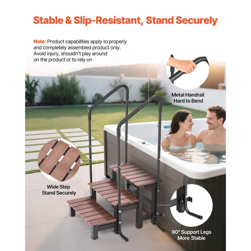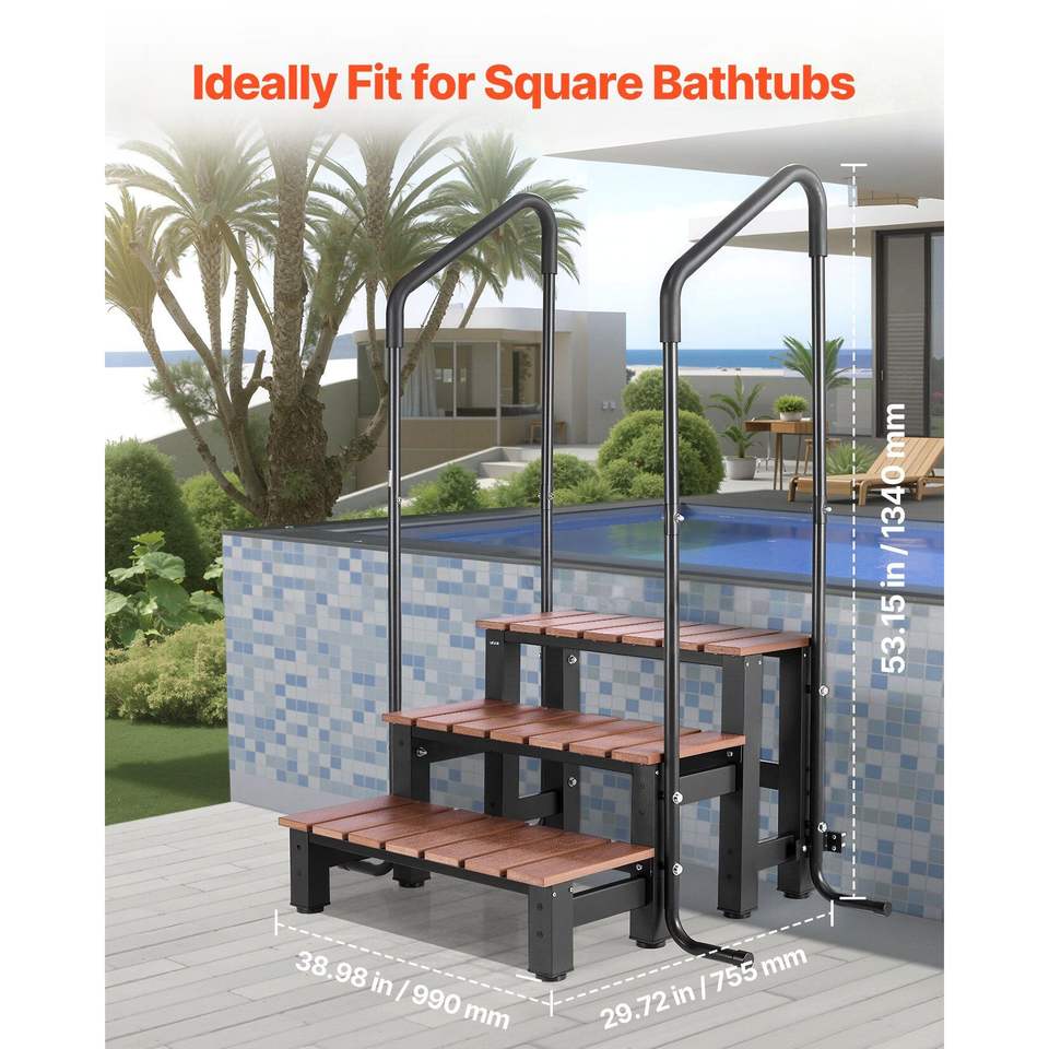 Heavy Duty 25.2 Inch Wide Above-Ground/Inflatable Pool Ladder 550 3-Step Spa Outdoor Stairs Hot Tub Handrail