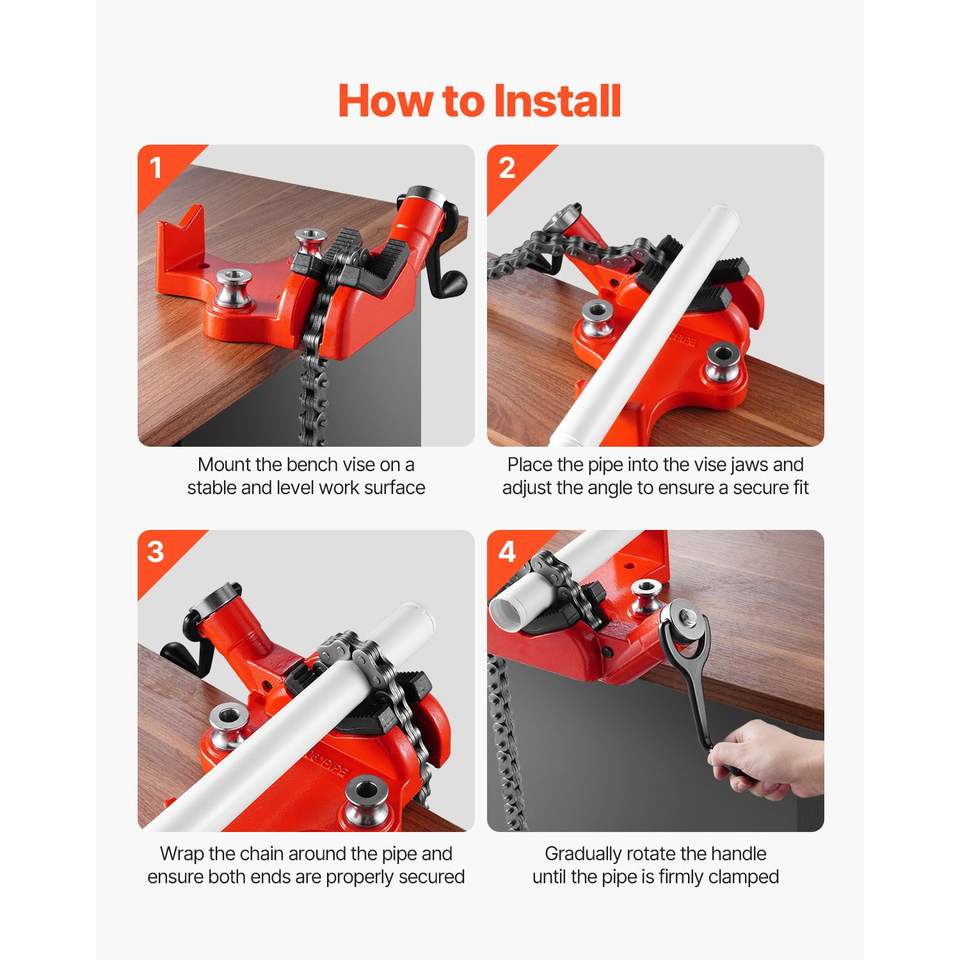 Morsa Industriale Robusta con Base in Ghisa da 28 Pollici e Capacità per Tubi da 1/4'' a 6'', Strumento di Serraggio per Tubi