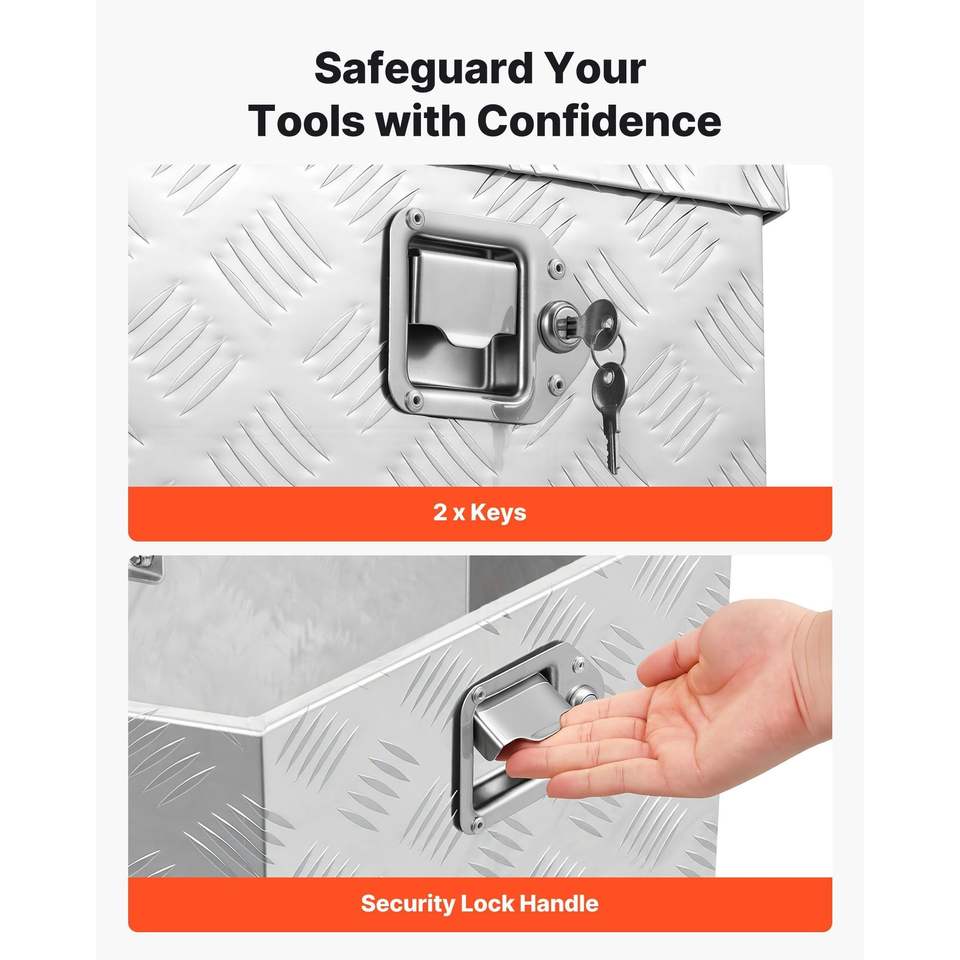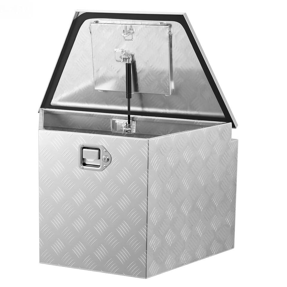 Cassetta Portautensili per Rimorchio in Alluminio Rinforzato 74x41x46 cm, Nuovo Organizzatore Portaoggetti Resistente con Chiavi di Blocco, Multiuso