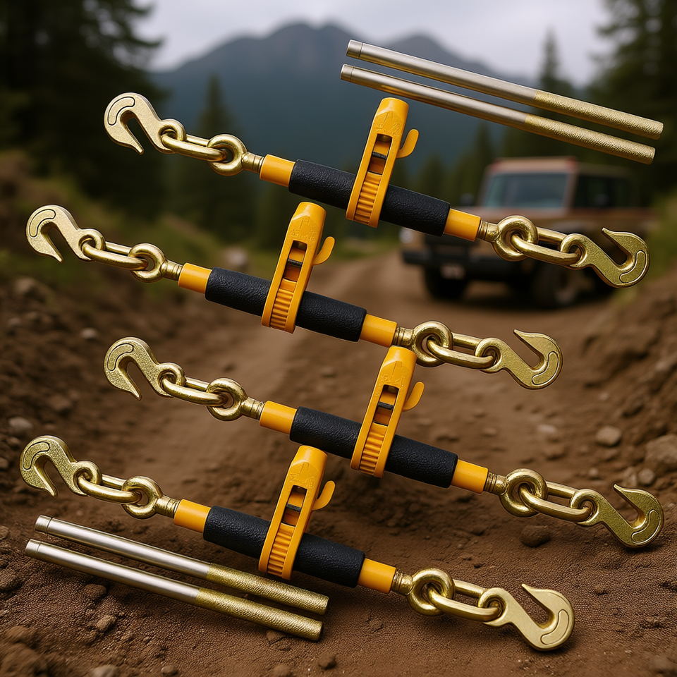 Set di 4 Ganci a Cricchetto in Acciaio G80 Resistenti da 3/8-1/2 Pollici, Capacità 12000 Libbre, per Recupero Veicoli