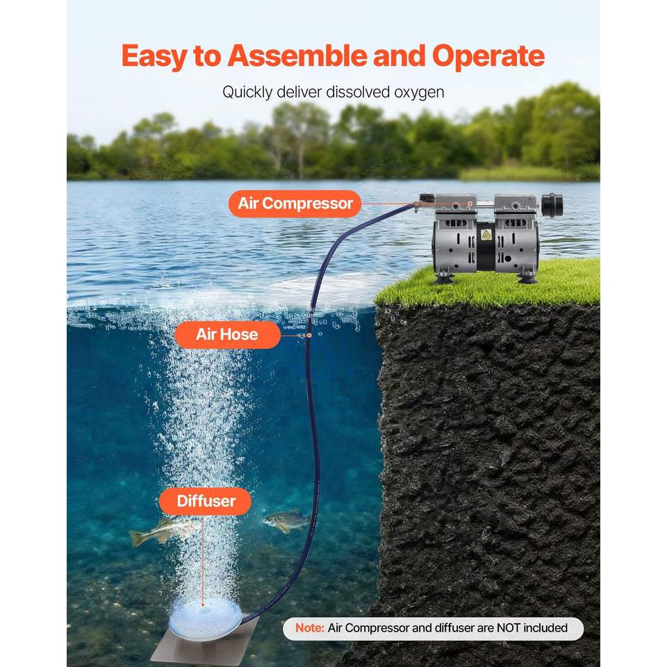 Tubo Flessibile per Aeratore da Laghetto Autoaffondante Rinforzato da 3/8, Lunghezza 30 Metri, in Gomma, per Macchine di Aerazione per Acquacoltura
