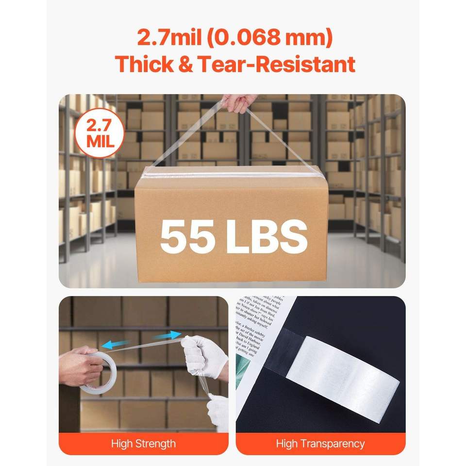 Nastro Adesivo Trasparente Resistente da 3 Pollici, 12 Rotoli, 1,88 Pollici x 65 Iarde, 2,7 Mil, con Dispenser