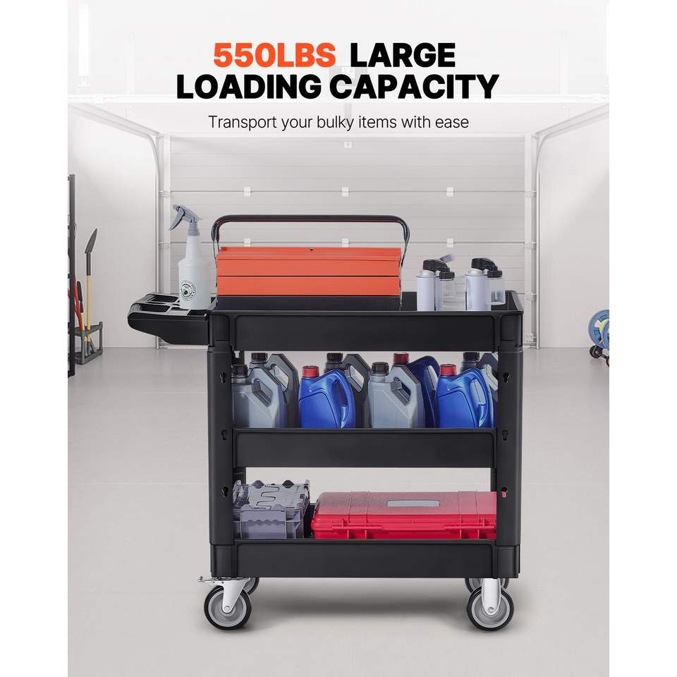 Carrello Multiuso a 3 Ripiani per Carichi Pesanti, Capacità di Carico 250 kg, Ruote Girevoli a 360 Gradi, Carrello di Servizio a 2 Ripiani