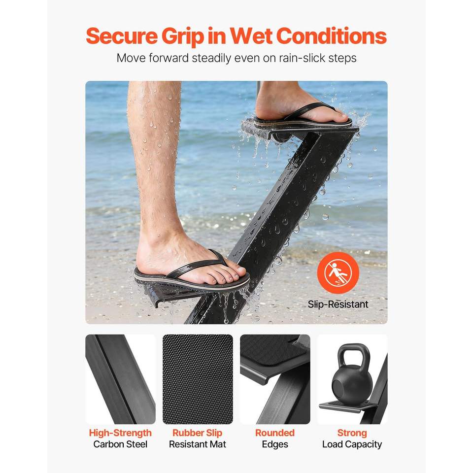 Heavy-Duty 3-Step Boat Trailer Steps with Non-Slip Handle Carbon Steel 3 Mounting Angle Options for Easy Watercraft Trailers Use
