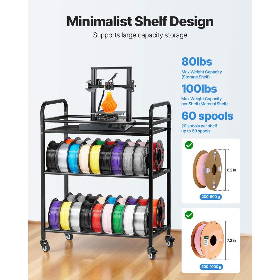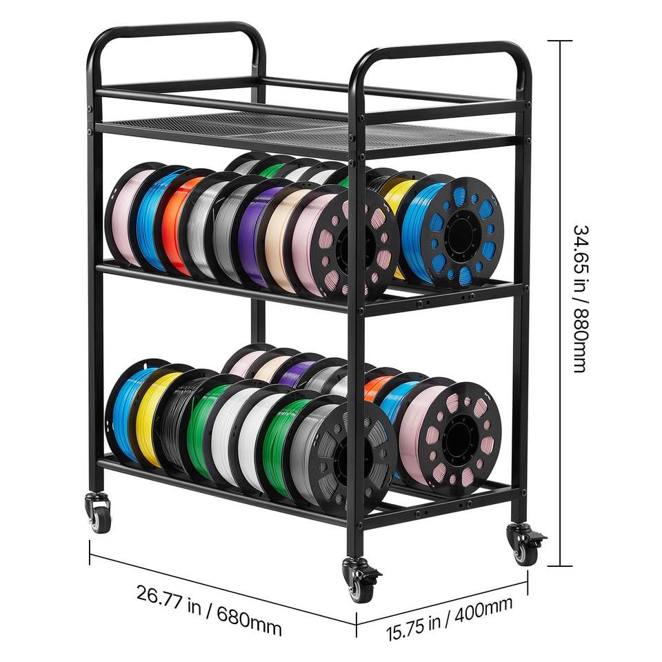 Scaffale Porta Filamenti per Stampante 3D a 3 Livelli, Robusto, con Ruote, per Gestione Efficiente dei Filamenti