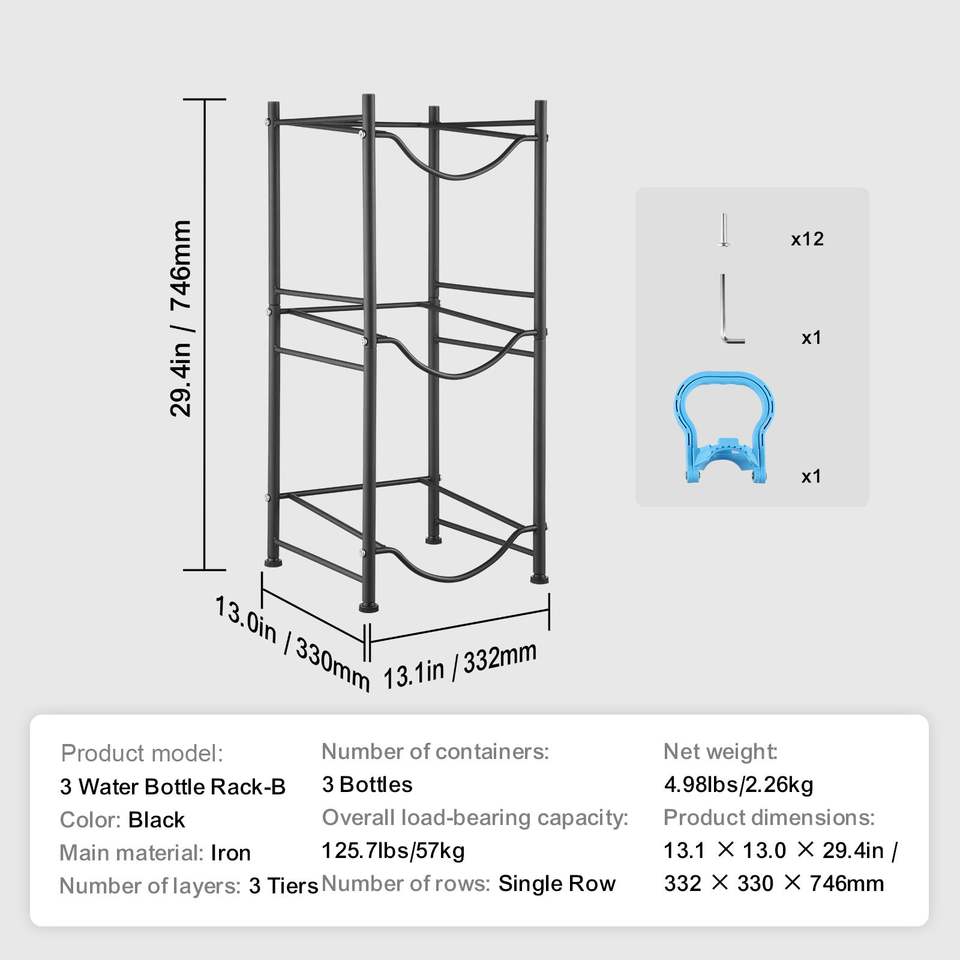 Portabottiglie per Acqua a 3 Livelli Resistente, Supporto per Bottiglie da 5 Galloni, Portabottiglie Singolo per 3 Bottiglie
