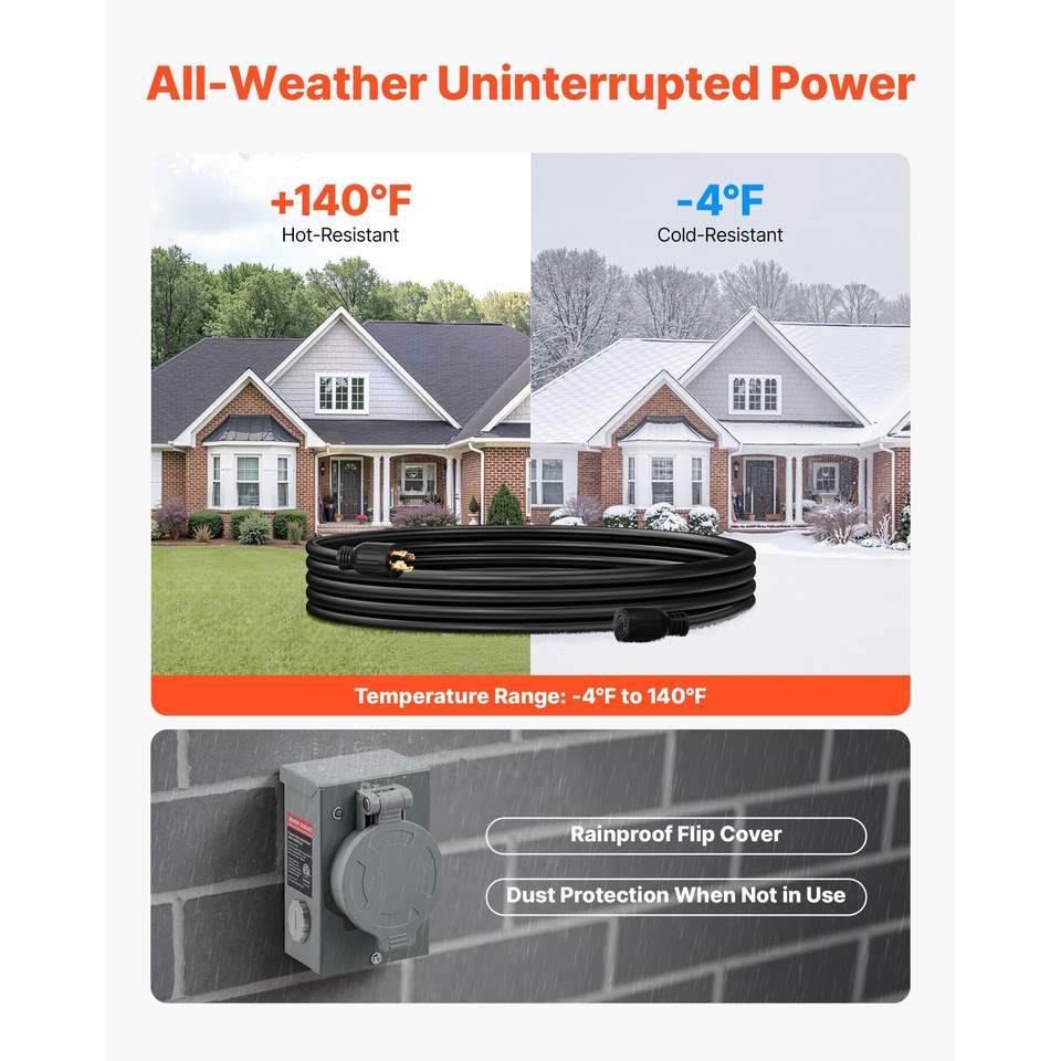 Cavo per Generatore Resistente da 30 Ampere con Scatola di Ingresso Alimentazione 10 FT 125/250V NEMA L14-30P L14-30R SJTW 10 AWG 100% Nuovo 100% Soddisfazione Garantita