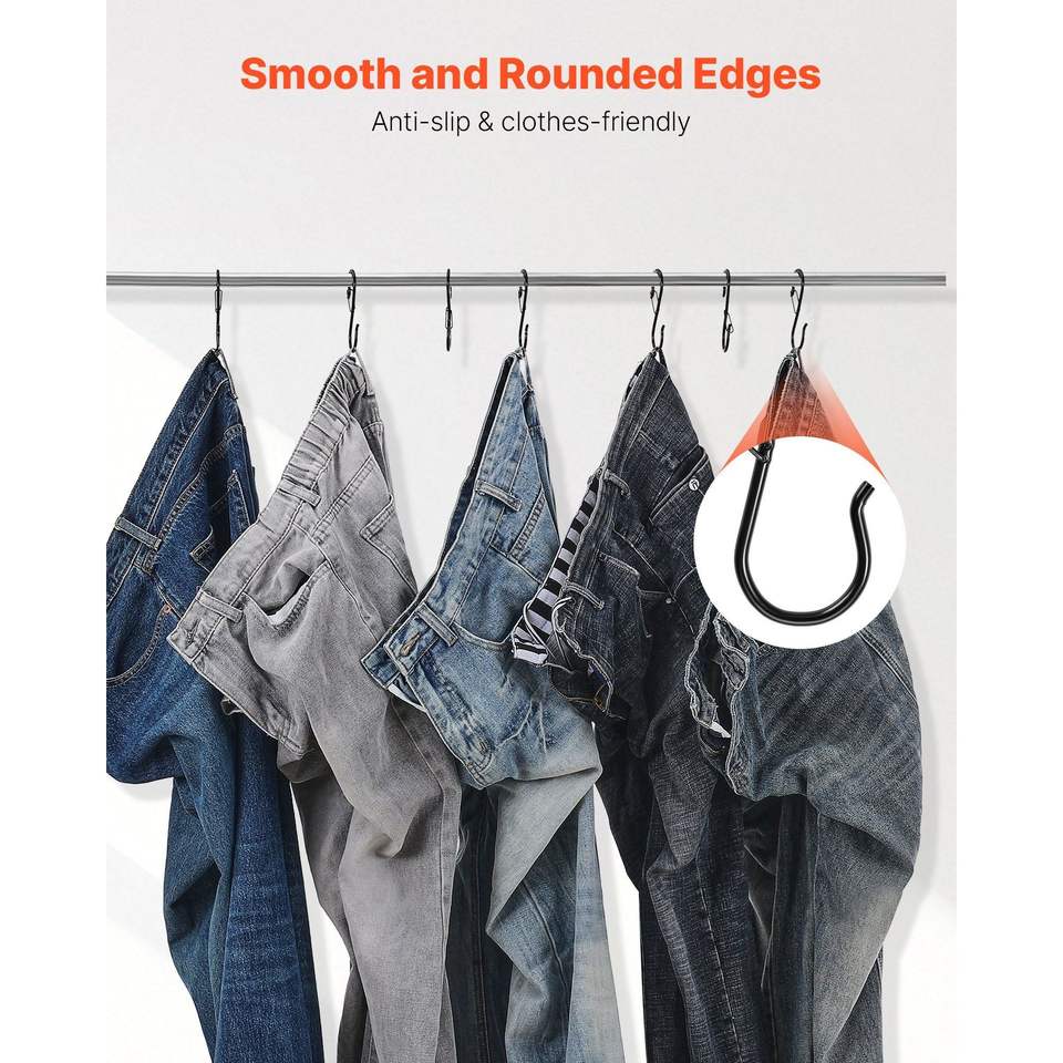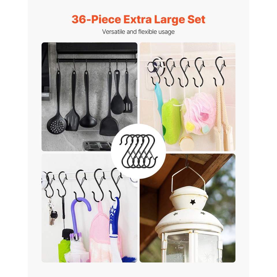 Ganci a S Resistenti (Confezione da 36) con Capacità di 18 kg, Fibbia di Sicurezza per Barre Fino a 22 mm, Ganci Metallici