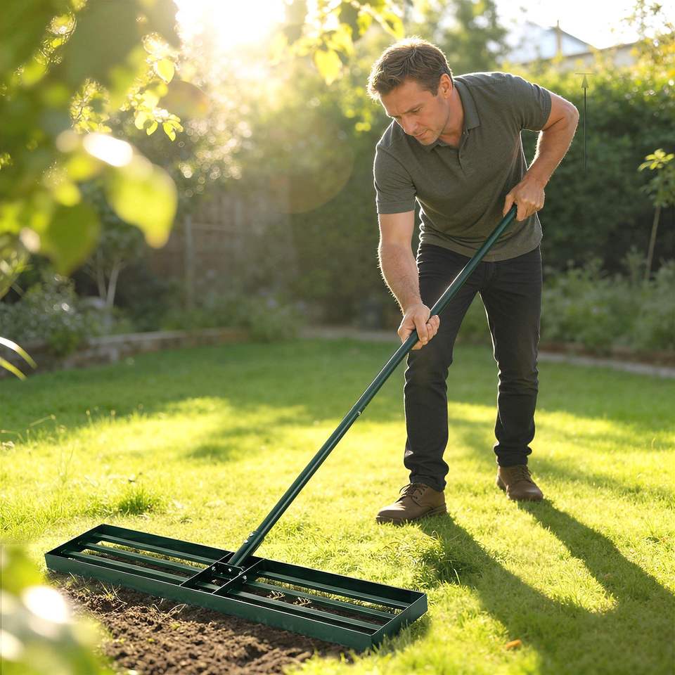 Rastrello Livellante per Prato Resistente 91,4 cm x 25,4 cm con Manico da 168,9 cm per Giardini e Campi da Golf