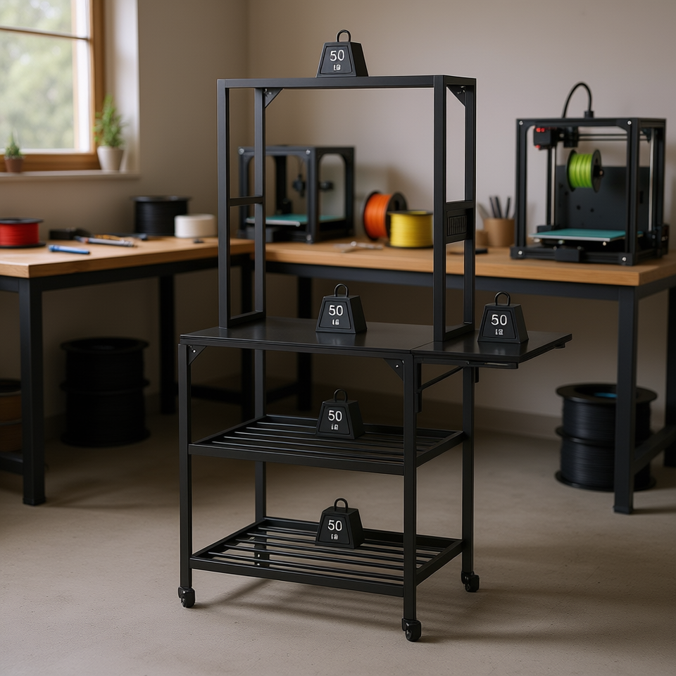 Supporto per stampante 3D in metallo con ruote e porta filamenti per casa, ufficio e officina