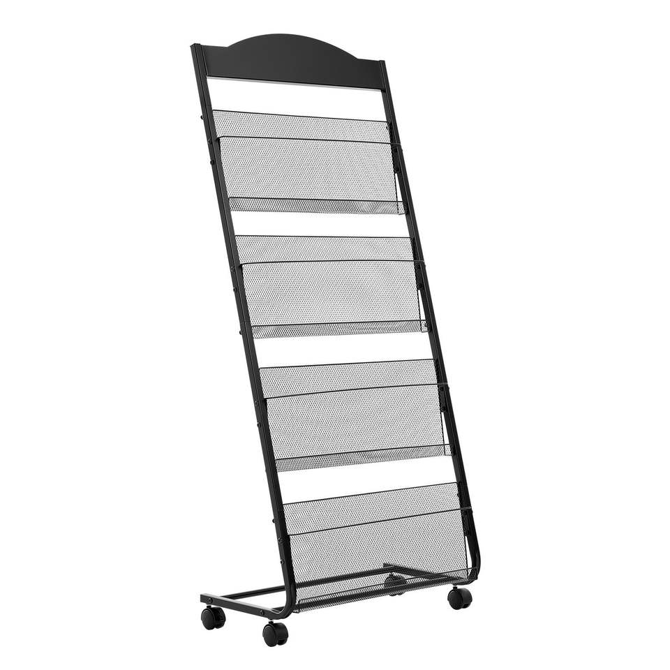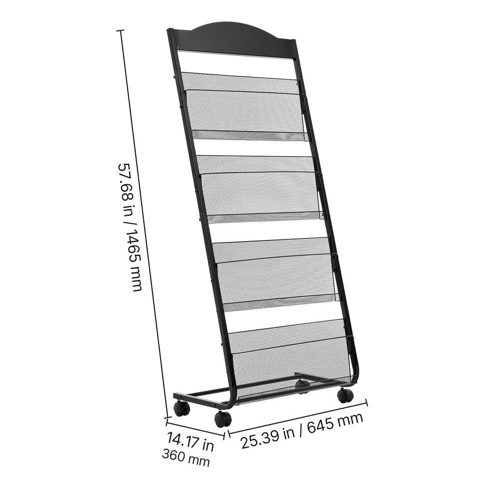 Heavy-Duty 4-Tier Brochure Display Rack Floor-Standing Magazine Literature Stand with Wheels Easy Mobility