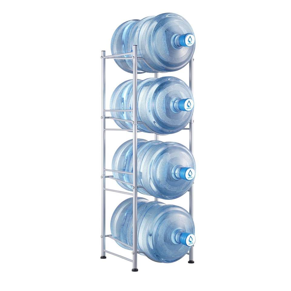 Heavy Duty 4-Tier Water Jug Holder 5 Gallon Water Bottle Rack with Single Row Design 4 Bottles Capacity Durable Utility Racks