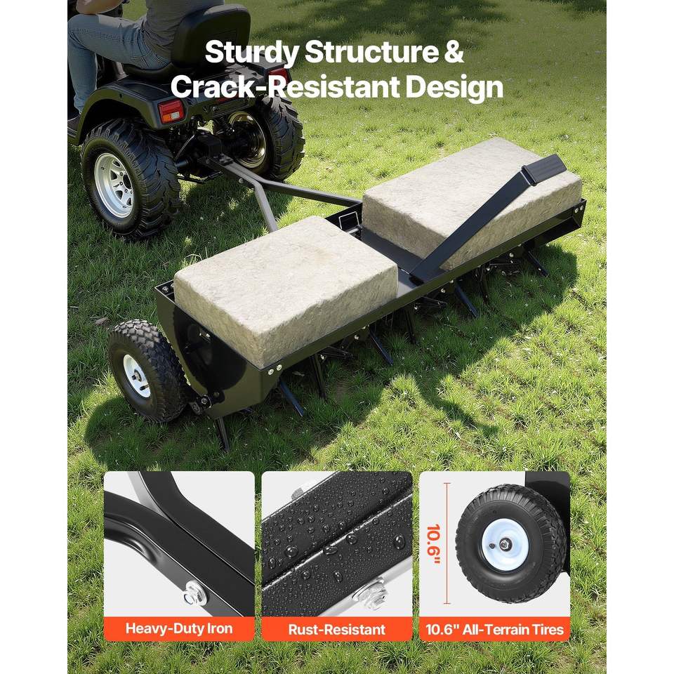 Aeratore Manuale per Prato Resistente da 40 Pollici, 150 libbre, con Attacco Universale e Funzione di Foratura, da Trainare