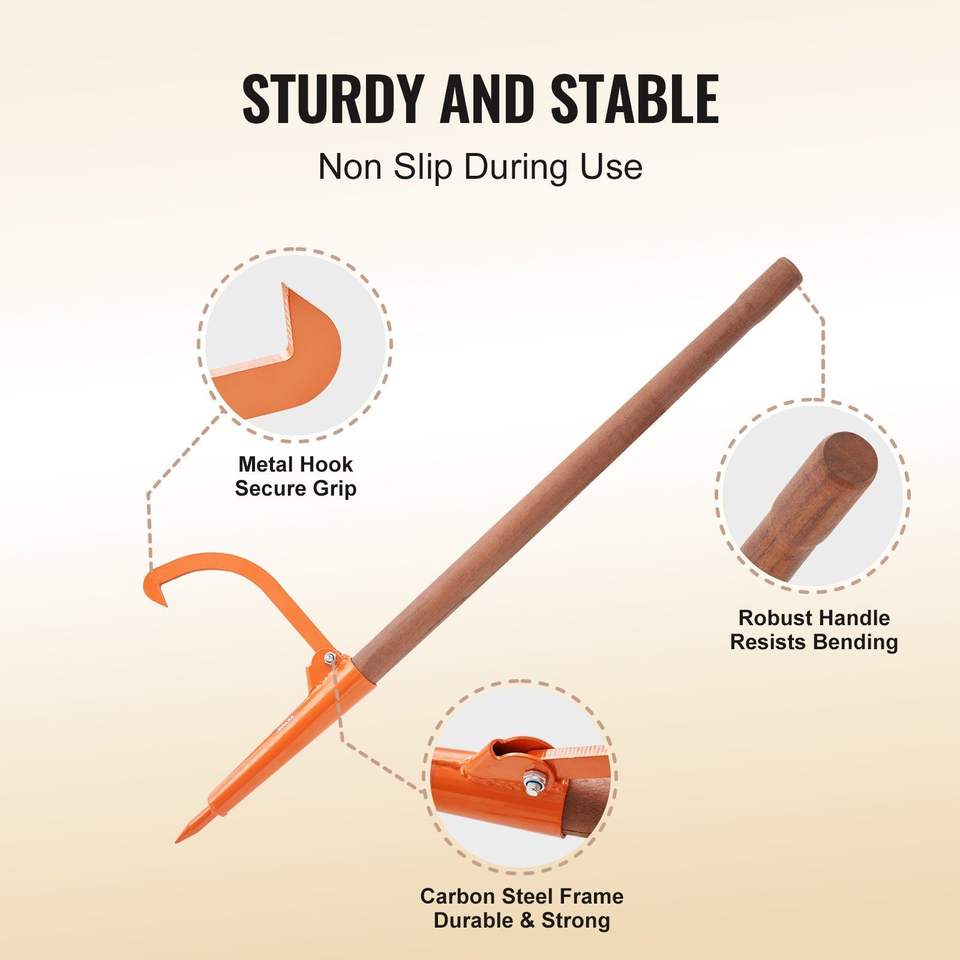 Heavy Duty 46.5 in Log Peavey with Wooden Handle Rust-Resistant Construction Lifter Jack Cant Hook for 18 Openings