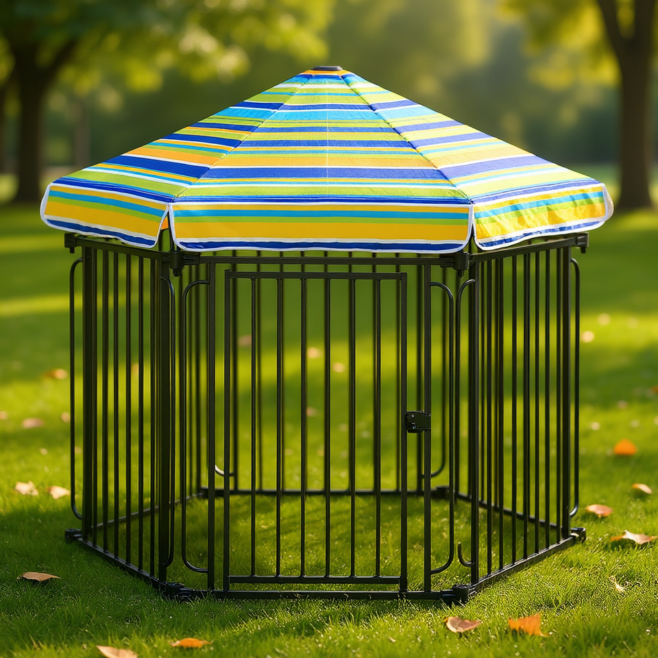 Freestanding Pet Playpen Kennel 6 Panels Brown Heavy-Duty With Door And Removable Cover For Small To Medium Sized Dogs