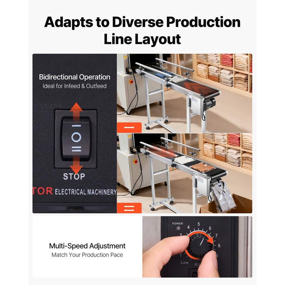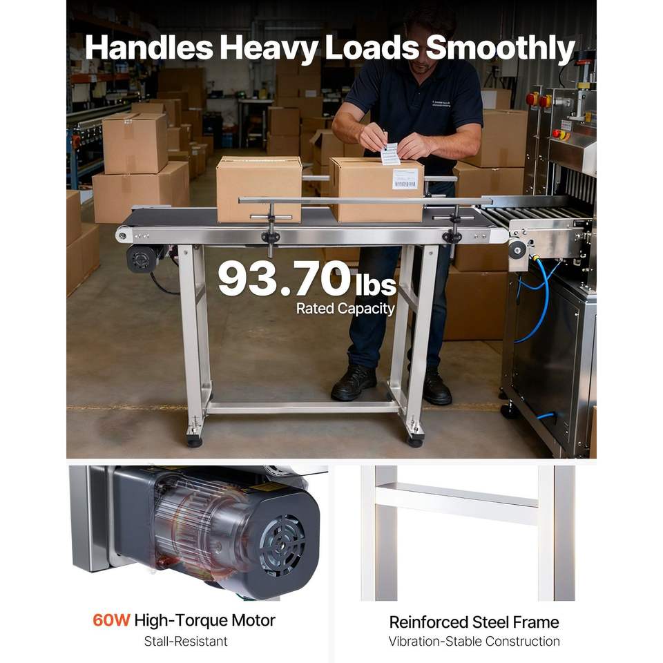 Nastro Trasportatore Motorizzato in Acciaio Inossidabile Resistente 47 x 7,8 Pollici, Tavolo Trasportatore da 7,8 Pollici per Applicazioni di Codifica a Getto d'Inchiostro
