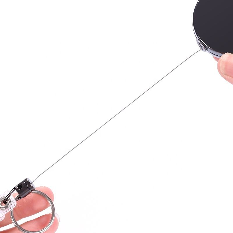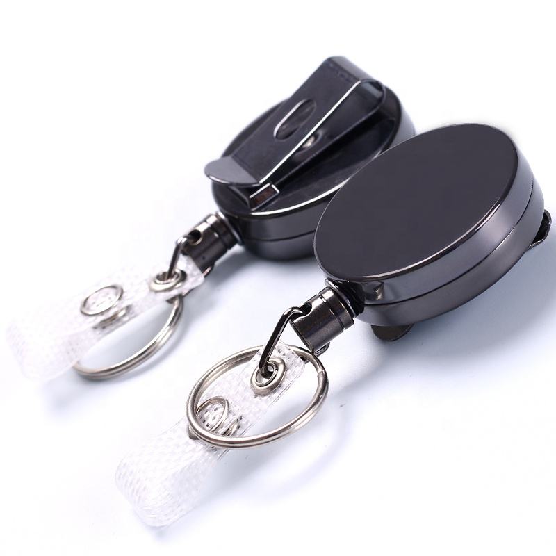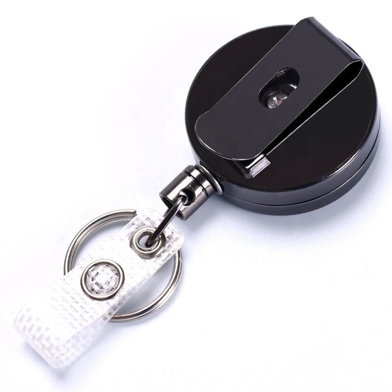Heavy Duty 4cm Diameter Metal Round Retractable Keychain ID Badge Reel Holder With Circle Keyring Belt Clip Carabiner