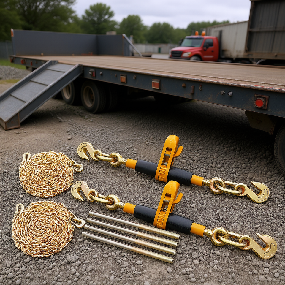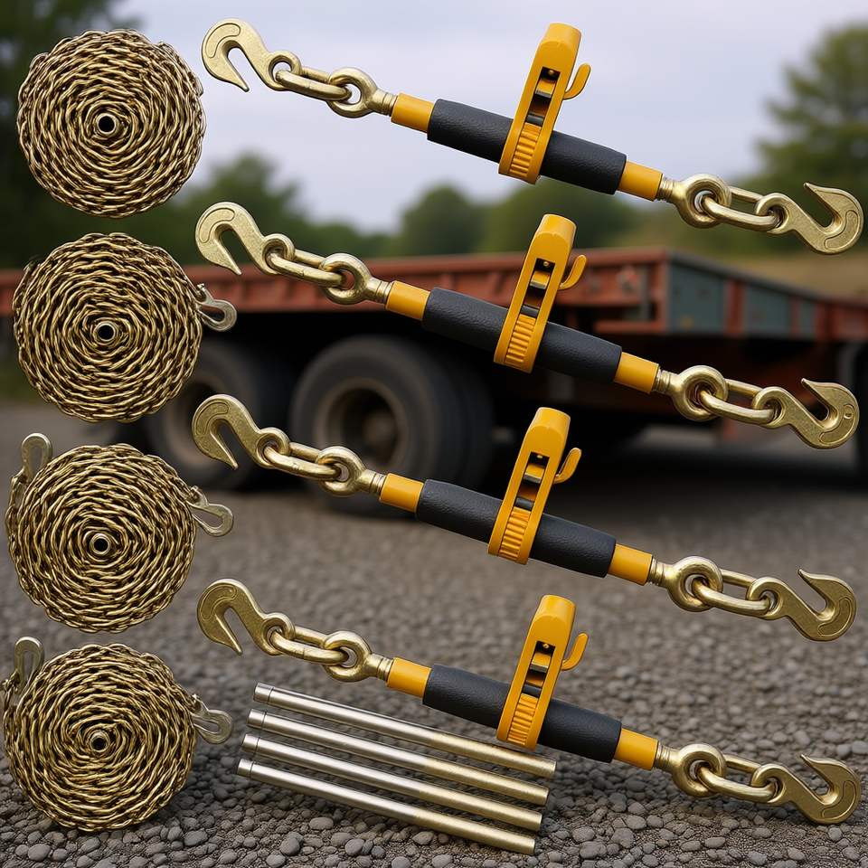 Tendicatena a cricchetto 5/16-3/8 pollici, resistenza al rottura 7100 libbre, gancio a J in acciaio per fissaggio carico su pianale