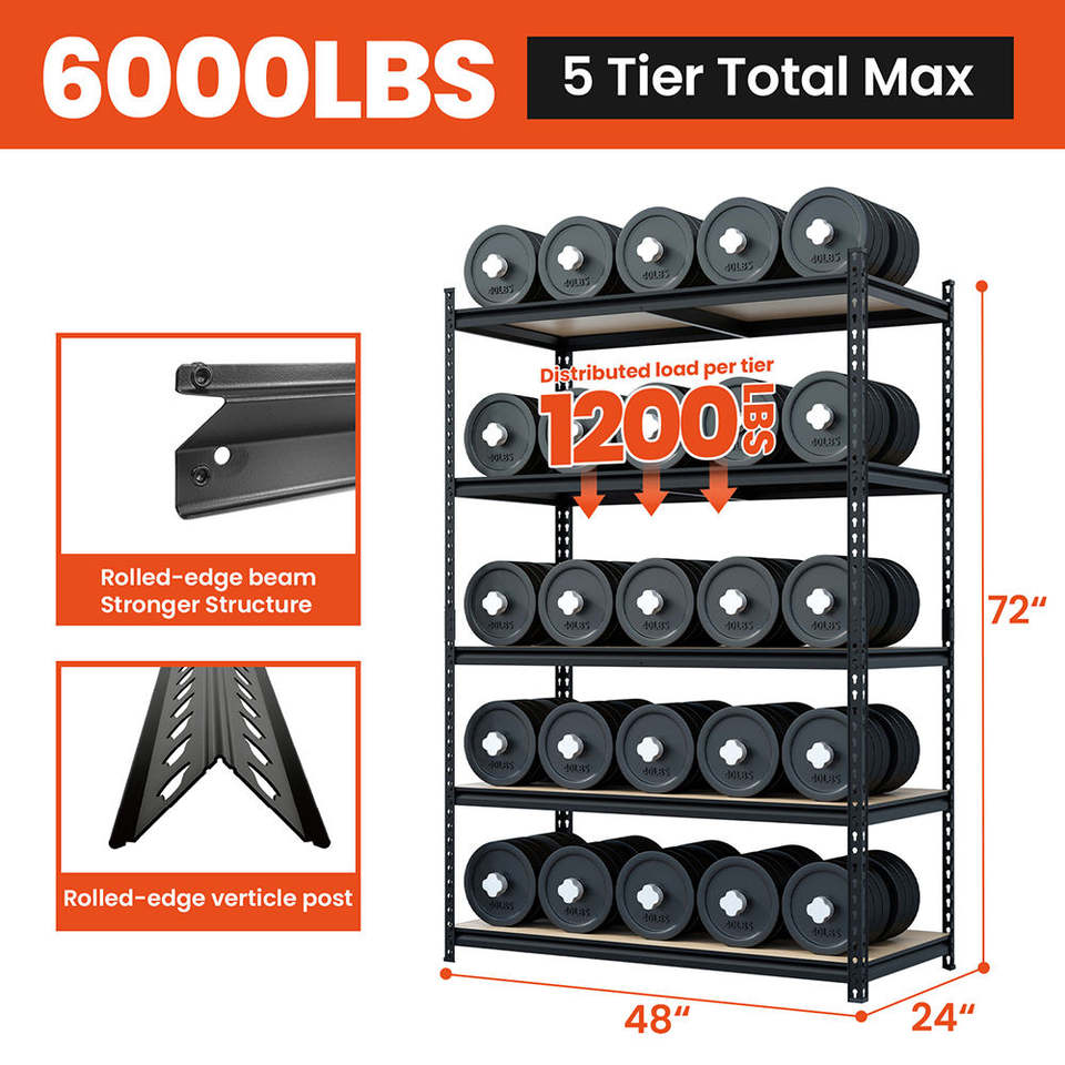 Scaffale Metallico a 5 Ripiani per Carichi Pesanti, per Negozi, Magazzini e Garage, Alta Capacità di Carico