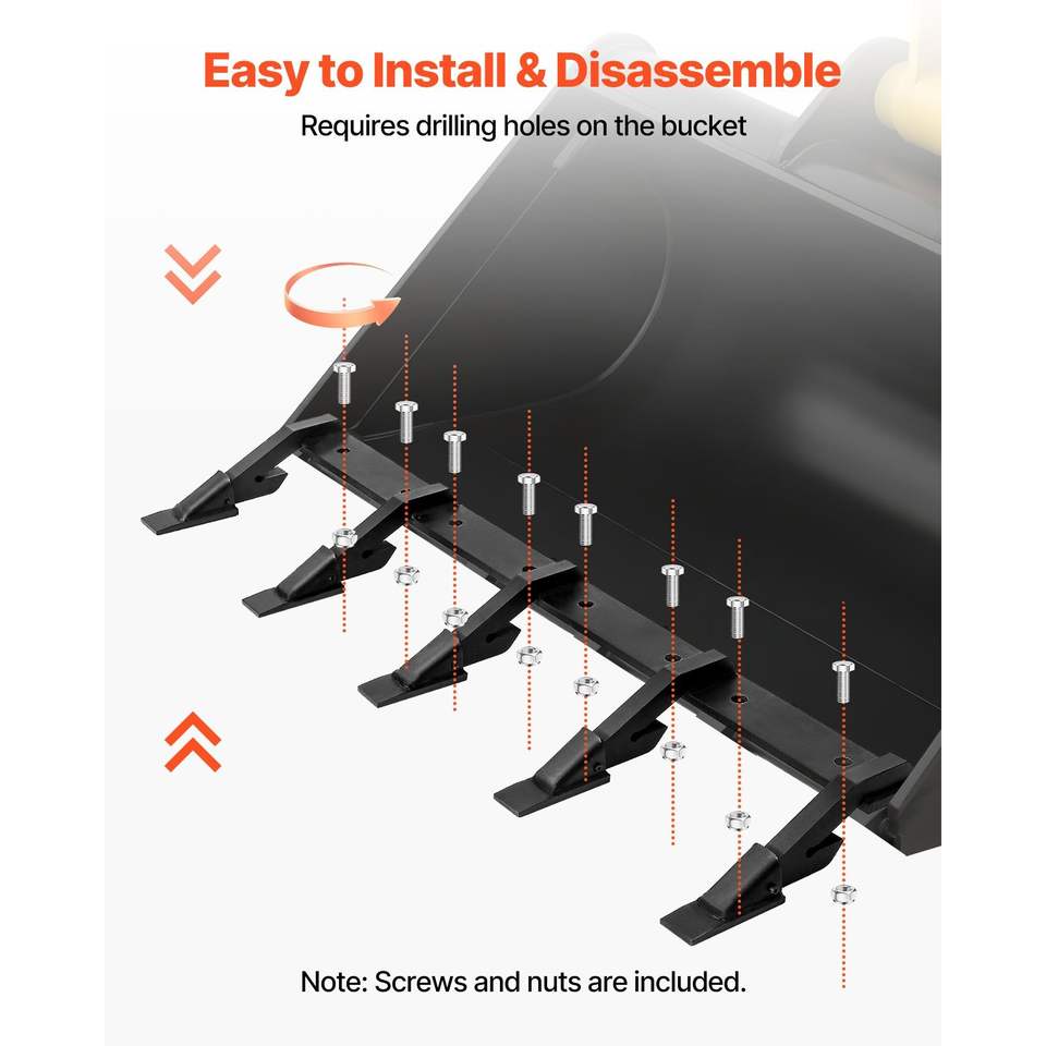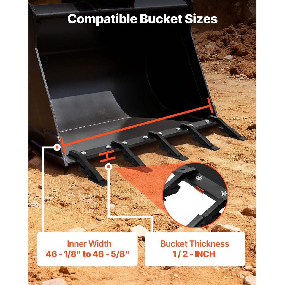 Barra dentata a 5 denti per benna per impieghi gravosi per caricatore a trazione e minipala con capacità di carico di 4560 libbre e 46 bulloni