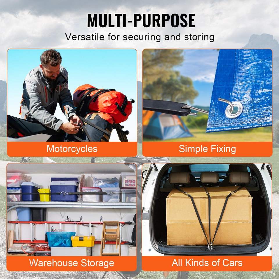 Set di 50 Corde Elastiche Piatte Resistenti con Ganci a S in Acciaio da 19,8 mm, 79 cm, Accessori per il Controllo del Carico per Camion e Teloni