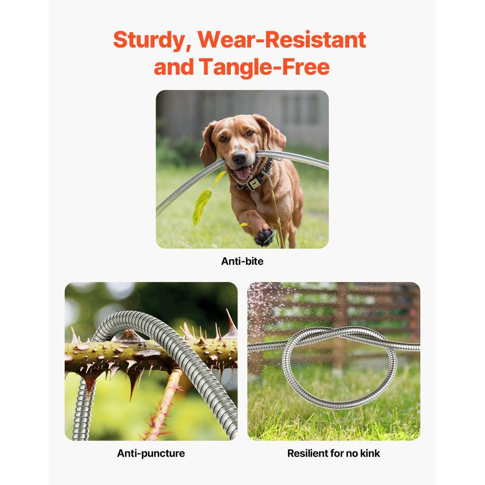 Tubo da Giardino Rinforzato in Acciaio Inossidabile Antiruggine da 15 Metri Anti-Piega con Ugello a 10 Funzioni Versatile per Giardino e Prato