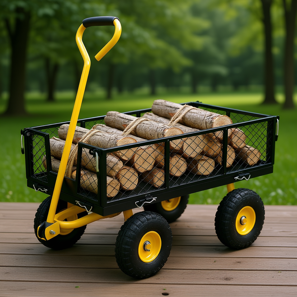 Heavy Duty Steel Garden Cart 10 Tires Rotating Handle Flatbed Utility Wagon For Outdoor Use