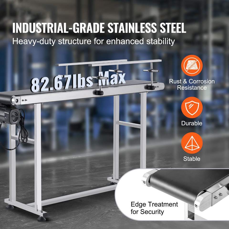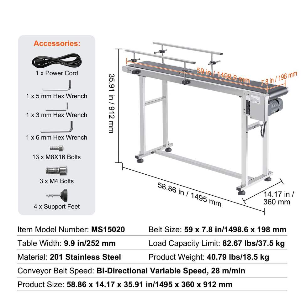 Nastro Trasportatore Motorizzato in Acciaio Inossidabile Resistente 59 x 7,8 Pollici, Tavolo Trasportatore da 7,8 Pollici per Applicazioni di Codifica a Getto d'Inchiostro