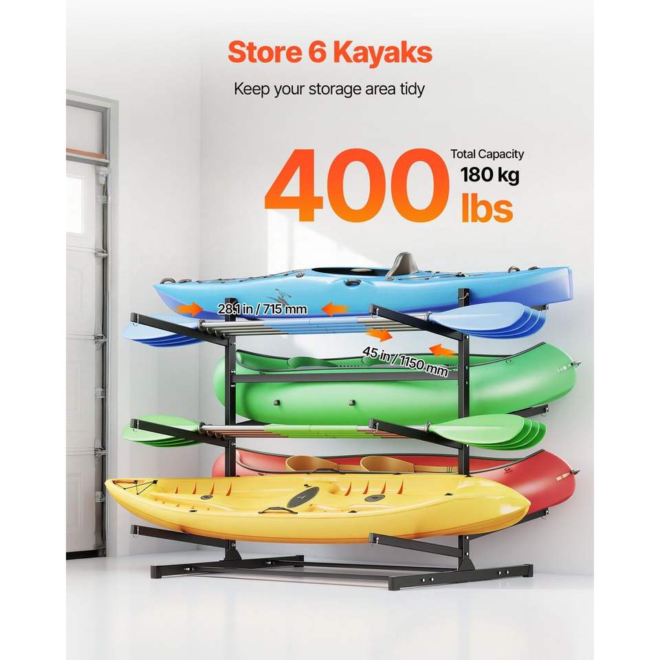 Porta Kayak Resistente per 6 Kayak, Capacità 180 kg, Supporto Autoportante per Interni/Esterni, per Garage e Deposito