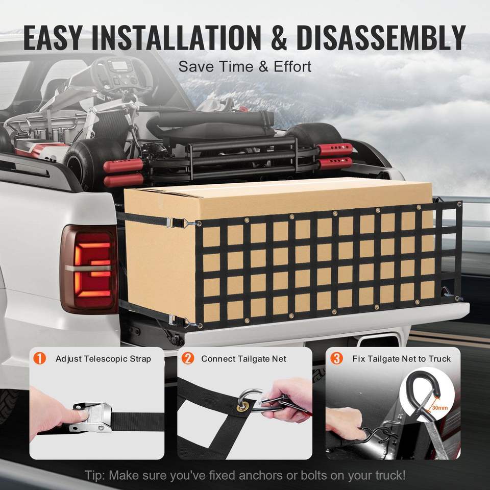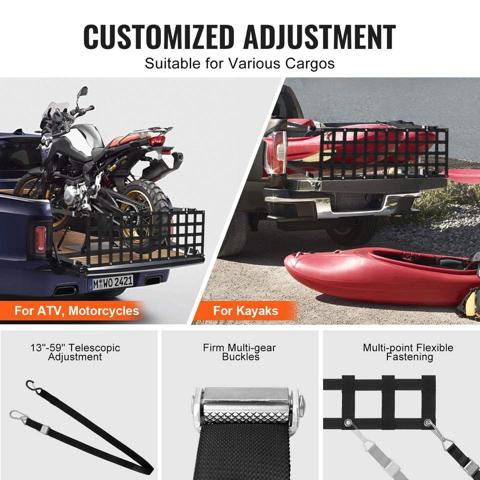 Rete per pianale camion resistente 60 x 18 pollici con 4 cinghie telescopiche regolabili, estensibile e durevole, accessori per il controllo del carico
