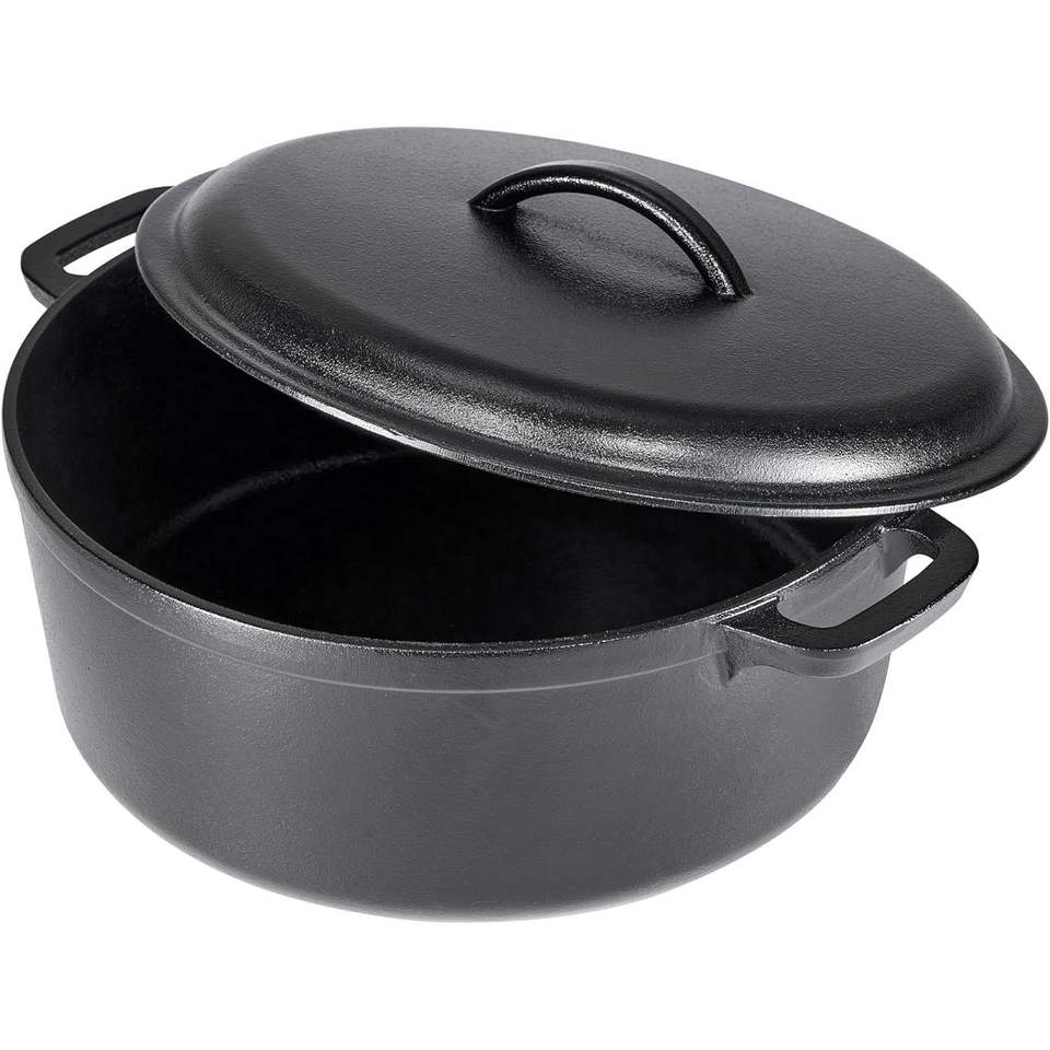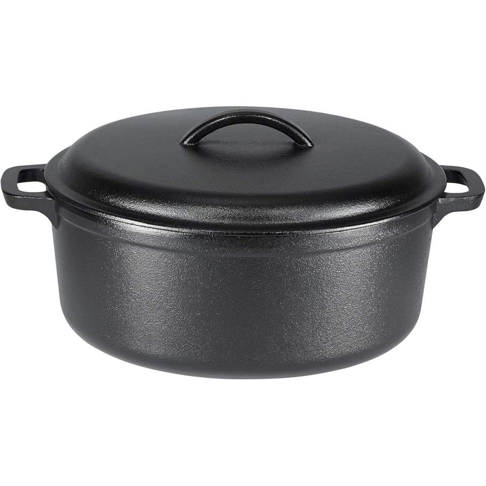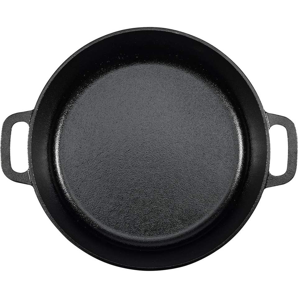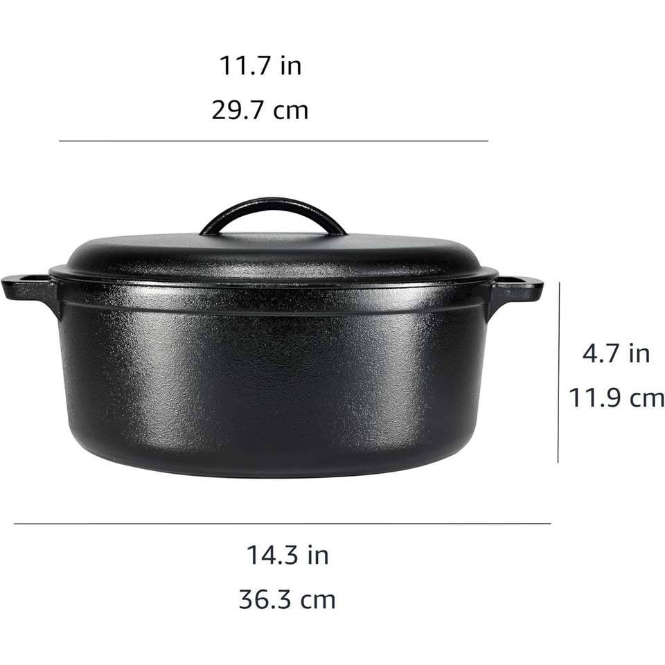 Pentola Olandese in Ghisa Resistente da 7 Litri, Nera, Rotonda con Coperchio e Doppi Manici, Adatta al Forno