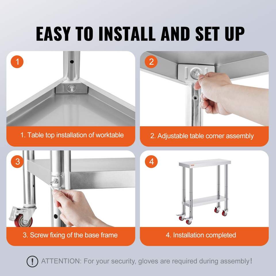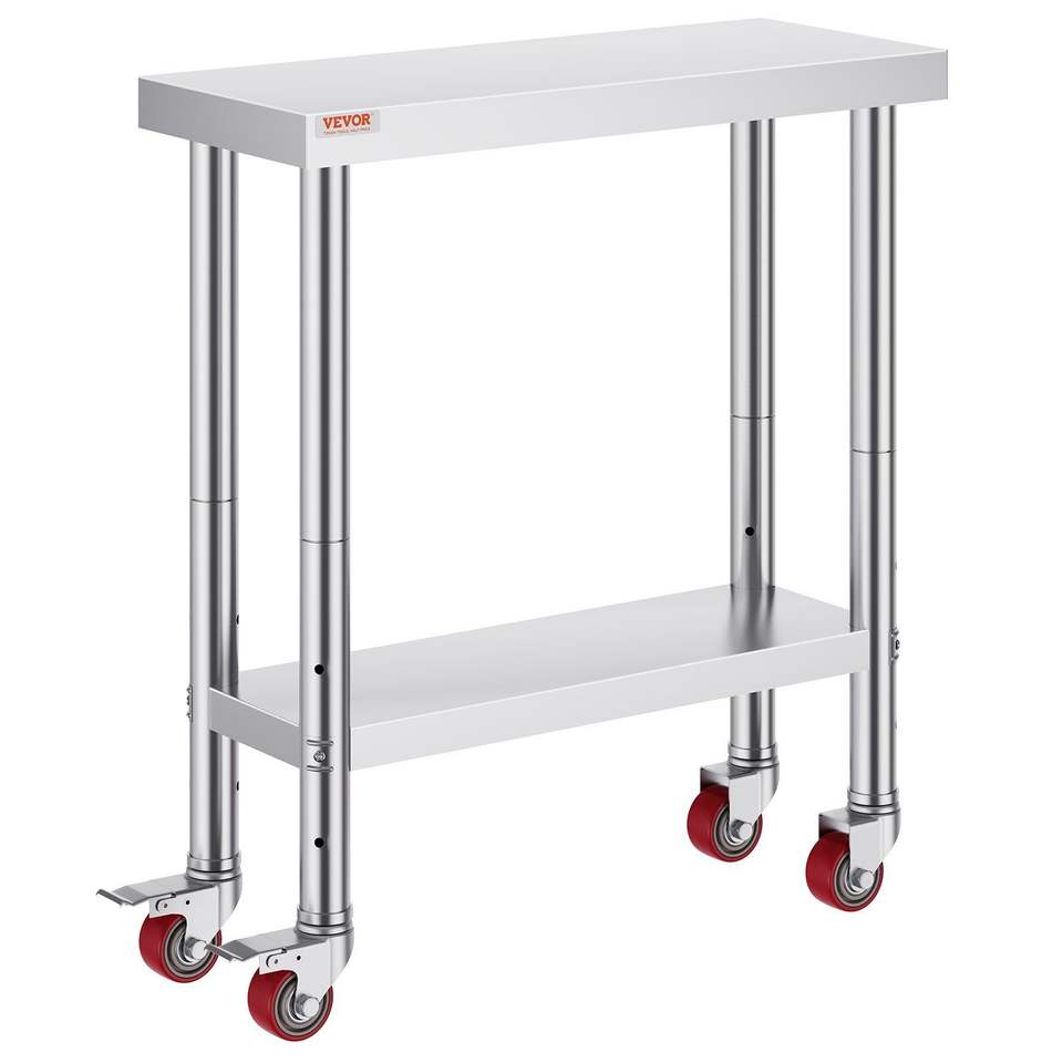 Tavolo da Lavoro in Acciaio Inox per Cucina Commerciale, Capacità di Carico 700 LBS, 30 X 12 X 34 Pollici, 4 Ruote, 3 Regolazioni