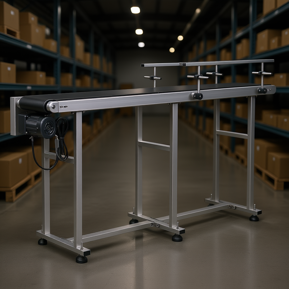 Heavy Duty 71 X 7.8 Inch Stainless Steel Motorized Belt Conveyor PVC Anti Static Adjustable Speed Double Guardrails For