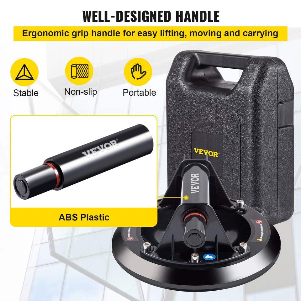 Ventosa per vetro resistente da 8 pollici con impugnatura in plastica, capacità di carico 220 libbre, portatile
