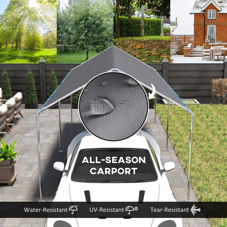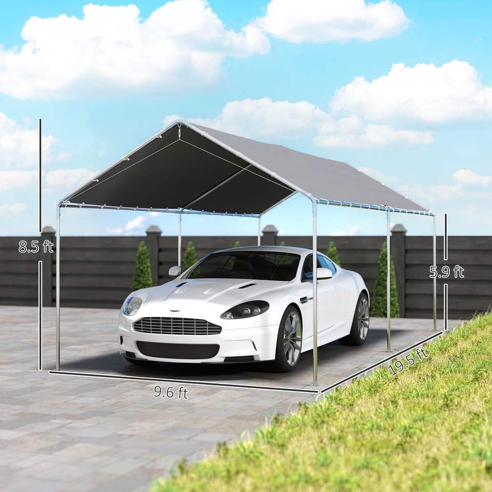 Tettoia per Auto Resistente 9,6 X 19,5 Metri, Zincata Grigia, con 3 Cavi in Acciaio Rinforzati e Kit di Ancoraggio Incluso