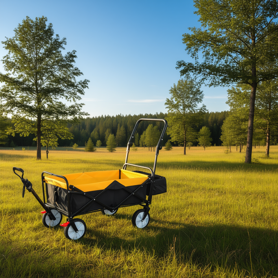Outdoor Folding Utility Wagon With Drink Holder Four Wheel Collapsible Garden Cart For Camping And Hiking Use